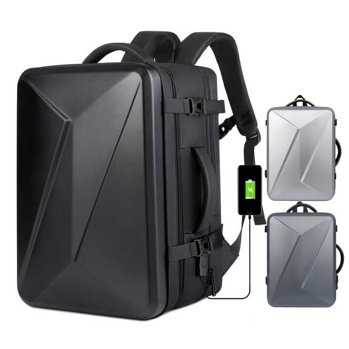Mochila de carcasa dura expandible de gran capacidad con USB, bolsa de ordenador portátil de 17 pulgadas, viaje ABS