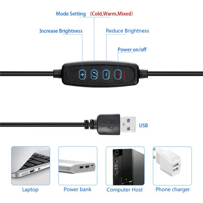 Mini Aro de Luz LED USB de 10'' con Control Remoto, Iluminación Fotográfica, Luz de Maquillaje para Chicas con Trípode