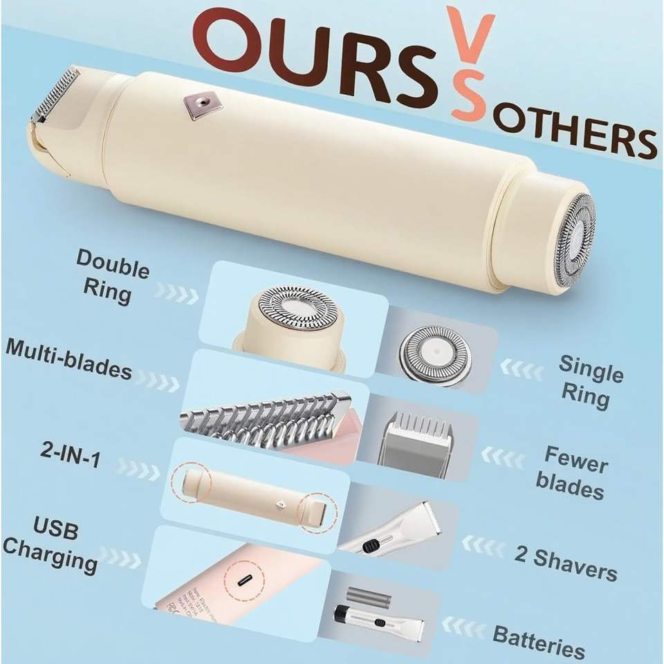 Recortadora Eléctrica Íntima USB para Mujer, Doble Cuchilla para Área del Bikini y Rostro, Afeitadora Corporal Suave para la Piel, Resistente al Agua IPX7