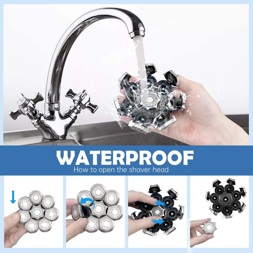 Cabezal de Repuesto para Afeitadora Rotativa Eléctrica USB, para Cara y Cuerpo, Cabeza Calva, Barba y Recortadora de Pelo, Accesorio Impermeable y Lavable