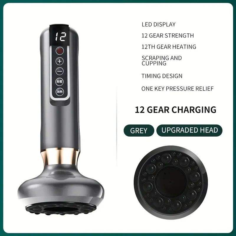 Masajeador de ventosas recargable por USB de 12 niveles con batería de litio de 1800 mAh, kit de masaje terapéutico y raspado corporal