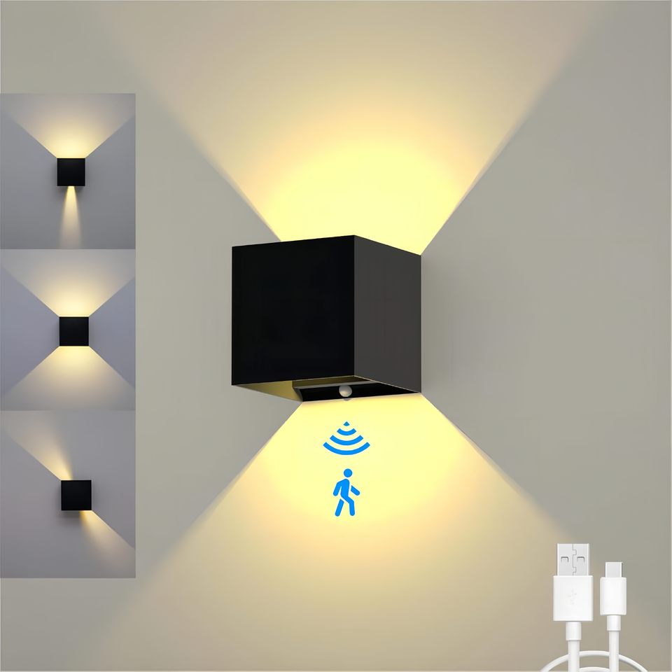 Diseño de cubo recargable USB arriba y abajo lámpara de pared de instalación magnética de aleación de aluminio grueso para escalera de pasillo de dormitorio