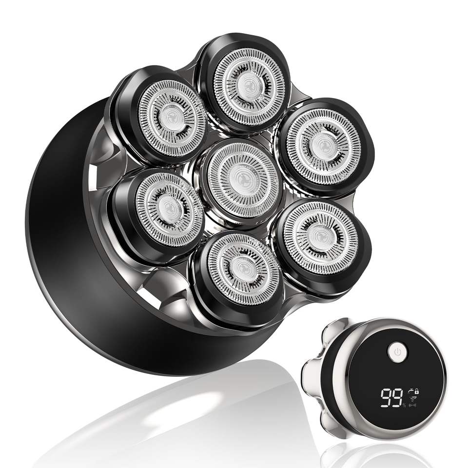 Afeitadora Eléctrica Recargable por USB para Hombres, Rasuradora de Cabeza Calva con Cabezales Giratorios, Pantalla LED, Recortadora de Barba Húmeda/Seca, Lavable