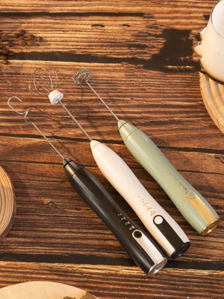 Batidor eléctrico recargable por USB, máquina de espuma de café de mano, batidor de huevos ecológico, 3 cabezales, estilo de diseño clásico