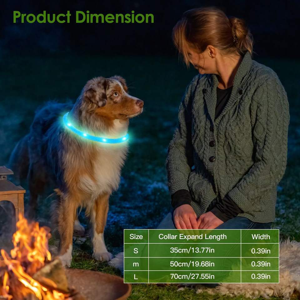 Collar LED Recargable por USB para Perros, con Iluminación Multicolor, Longitud Ajustable, Collar de Seguridad para Perros Pequeños, Medianos y Grandes