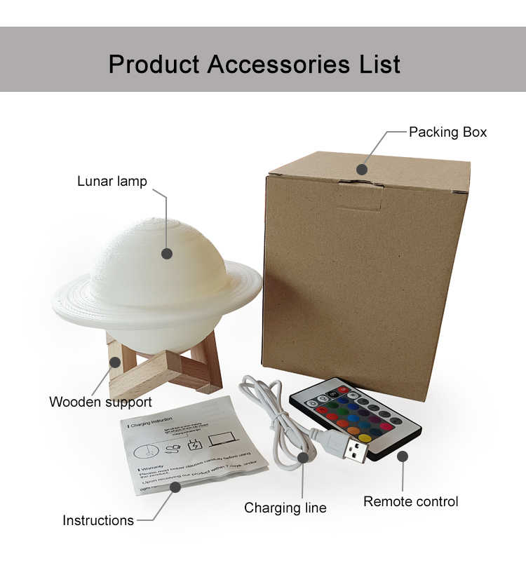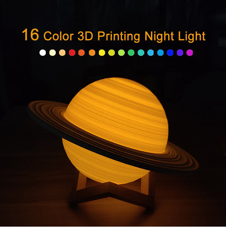 Lámpara de luz de avión Saturn recargable por USB, colorida, regulable, con Control remoto, RGB, LED, 3D