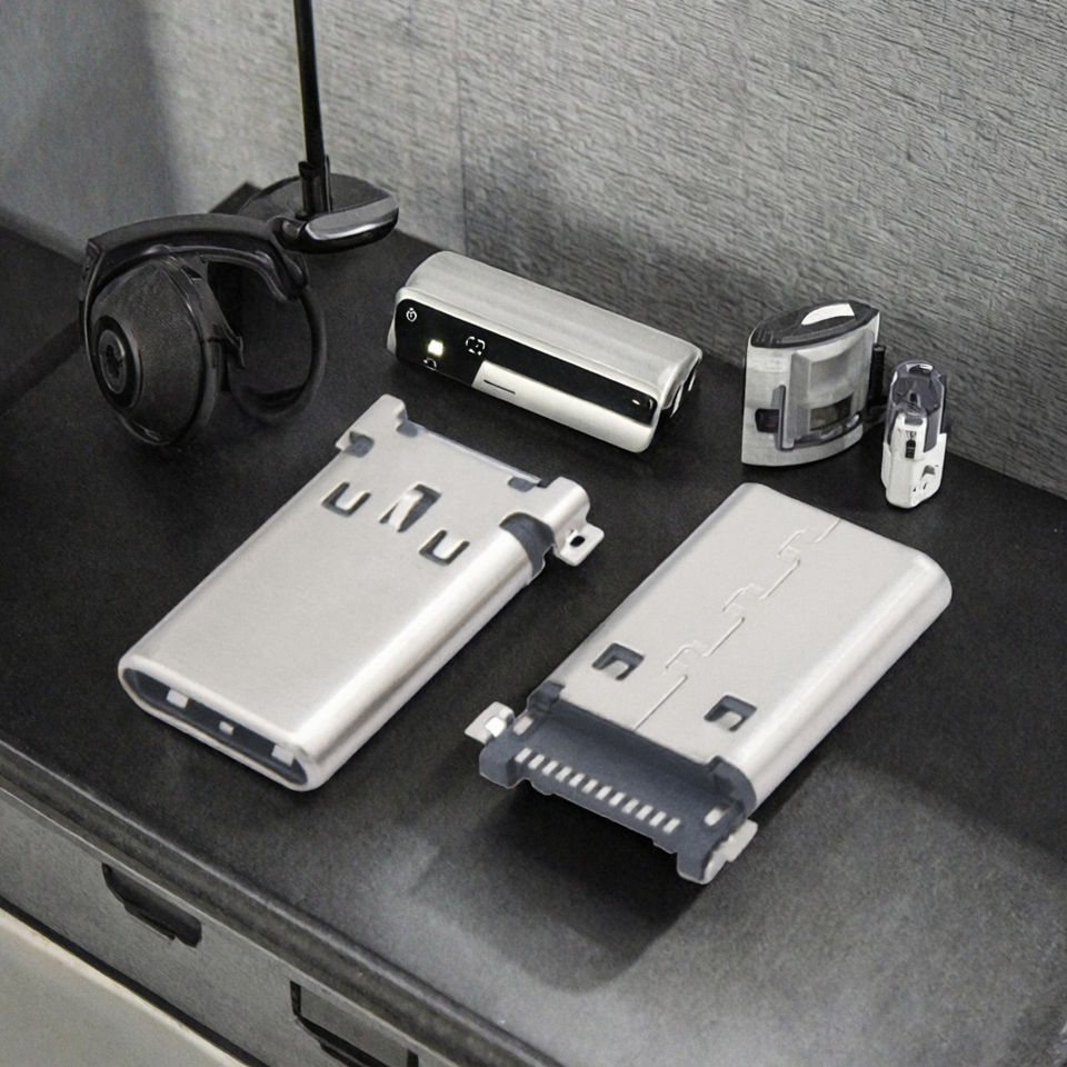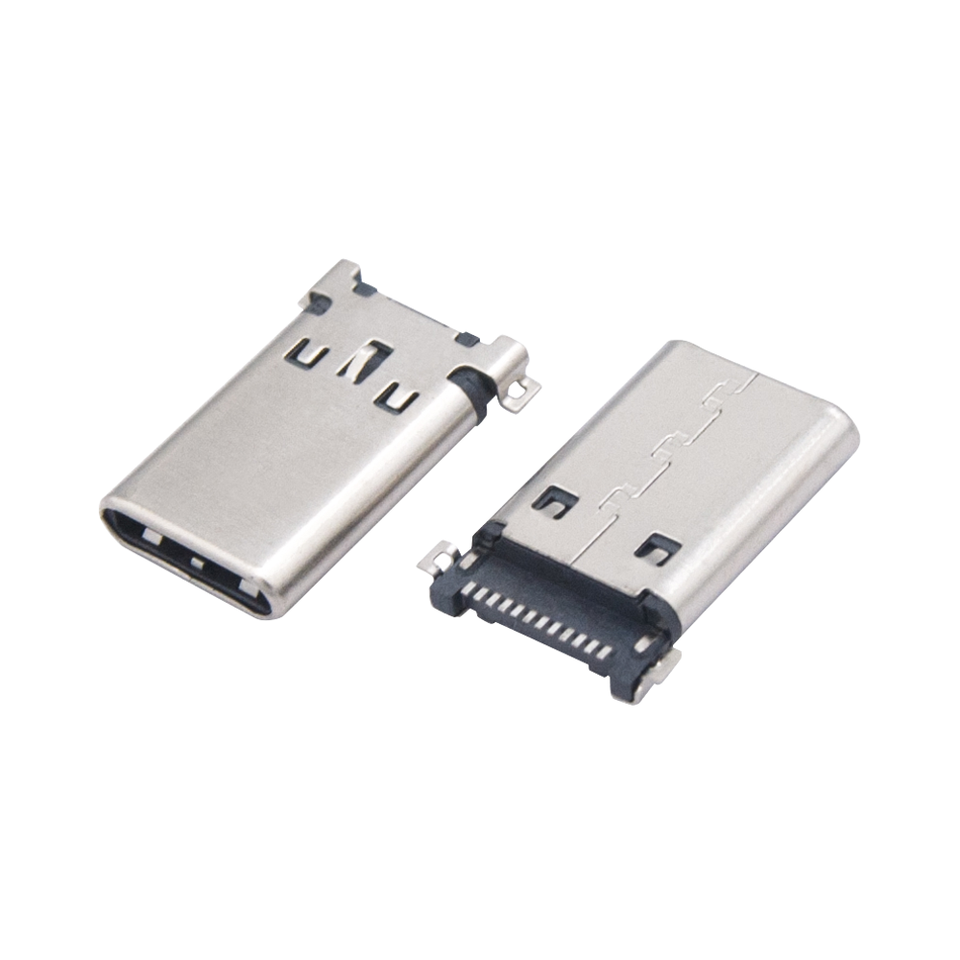 Conector USB Tipo-C de 12 Pines de Acero Inoxidable, Interfaz Horizontal Macho SMT para Montaje en Placa con Enchufe, Corriente Nominal de 5A