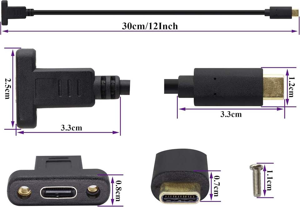 Cable Adaptador USB Tipo C 3.1 para Montaje en Panel, USB-C 3.1 Gen2 10Gbps Macho a USB C Hembra, Cable de Extensión con Tornillo para Montaje en Panel