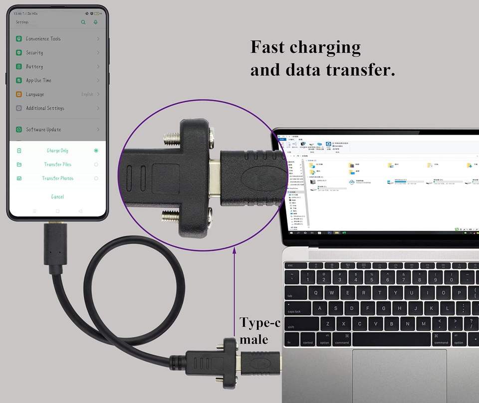 Male To Female usb c panel mount cable