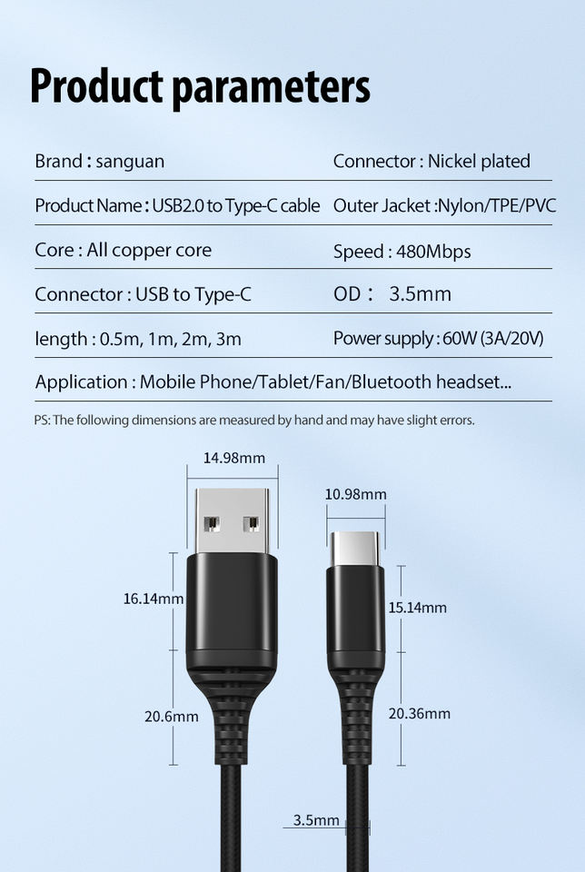 Nombre:Cable USB tipo C a USB A