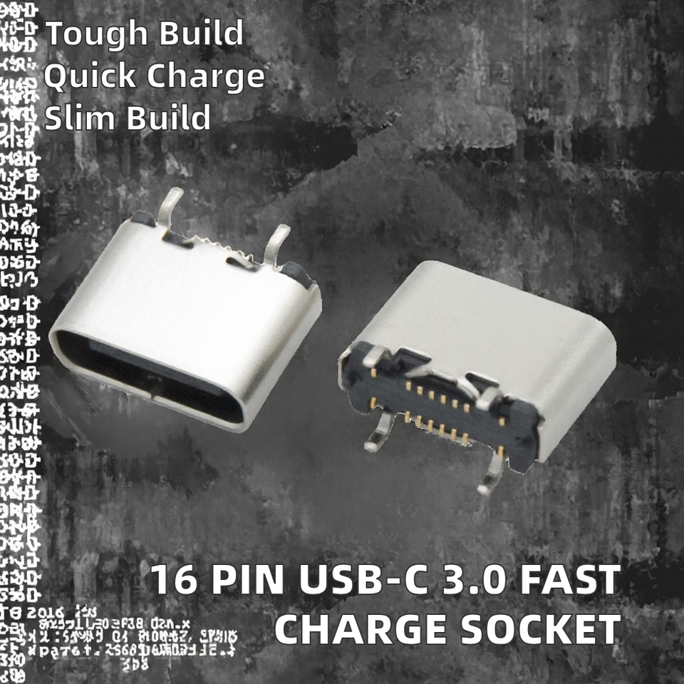 Conector Hembra USB Tipo C de Acero Inoxidable, 16 Pines, Puerto de Carga Rápida 3A/5A, Sin Blindaje