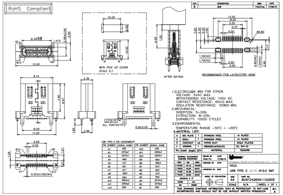 Nombre del producto:Tipo C H10.0 vertical SMT del USB