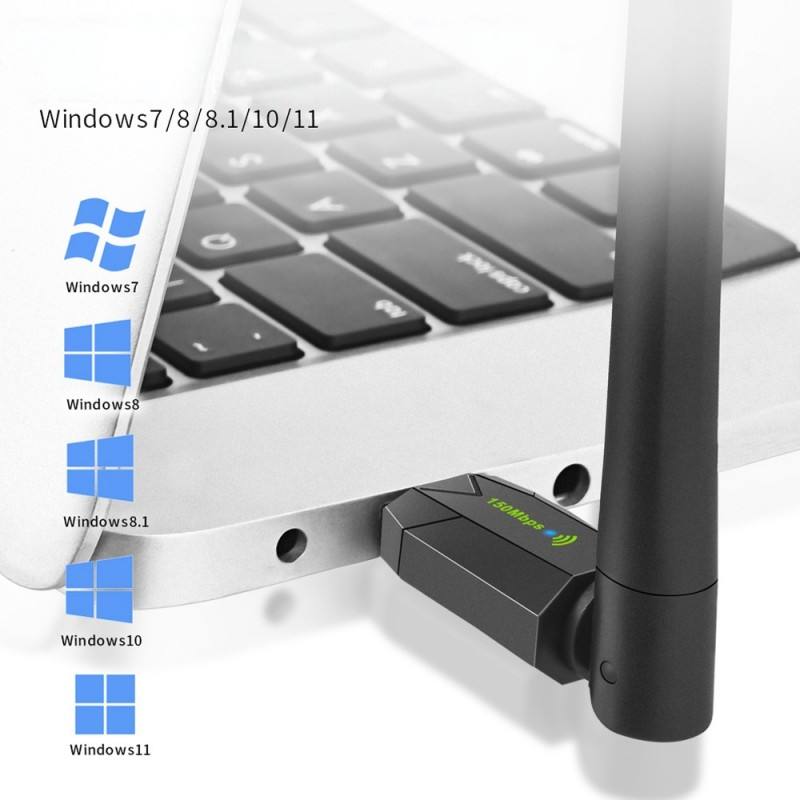 Adaptador USB WiFi de 150Mbps para PC | Tarjeta de red inalámbrica con antena de alta ganancia de 5dBi | Compatible con Windows 11, 10, 8.1, 7 y XP