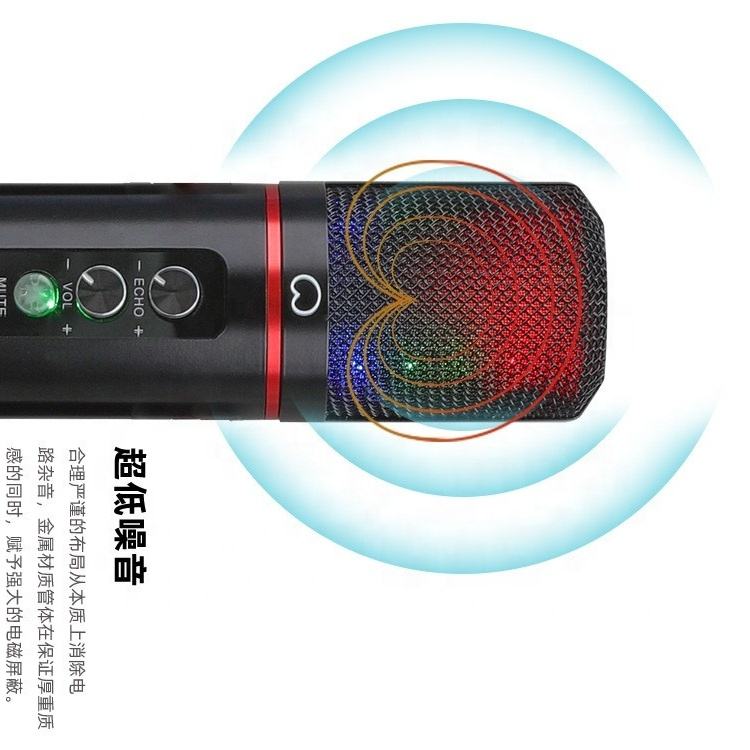 Función:Cancelación de ruido, Luz peso, Portátil, Micrófono de condensador, Con luces LED
