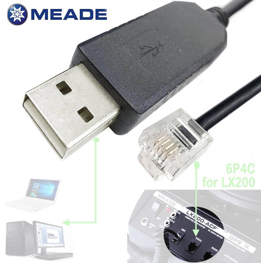 Cable Adaptador USB a RJ12 de PVC para Telescopio Meade LX200 ACF con Conductor de Cobre Puro - Cable de Control PC/Asiair Goto