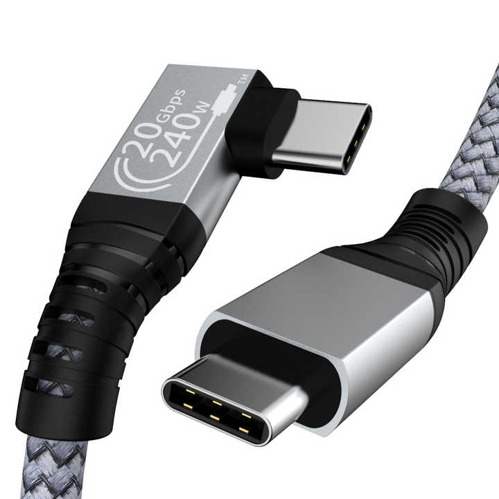 Cable de Datos USB3.2 Tipo C a Tipo C de 90 Grados en Ángulo Recto, Video y Audio 4K60, Carga Rápida de 20 GB Gen 2, Tipo C Macho a Hembra
