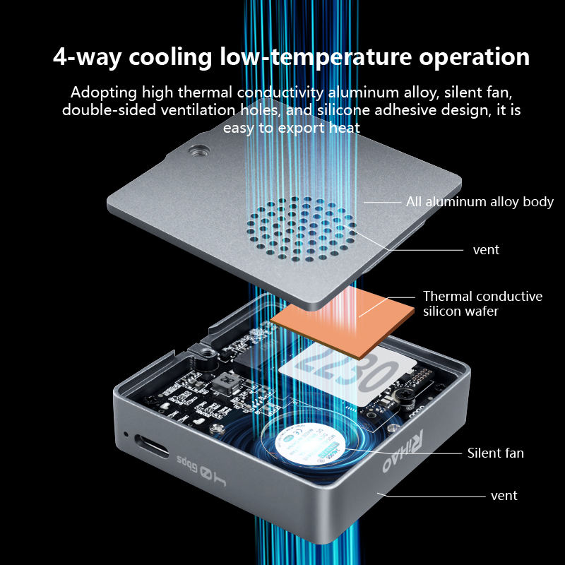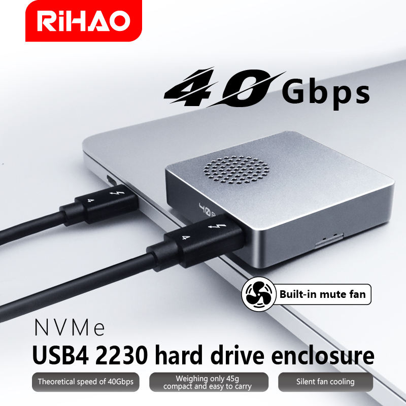 Caja de Disco Duro Móvil USB4 M2 de Estado Sólido NVME Externa Compatible con Thunderbolt 3/4 con Ventilador