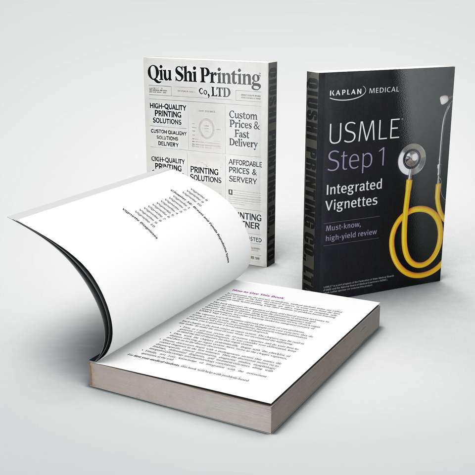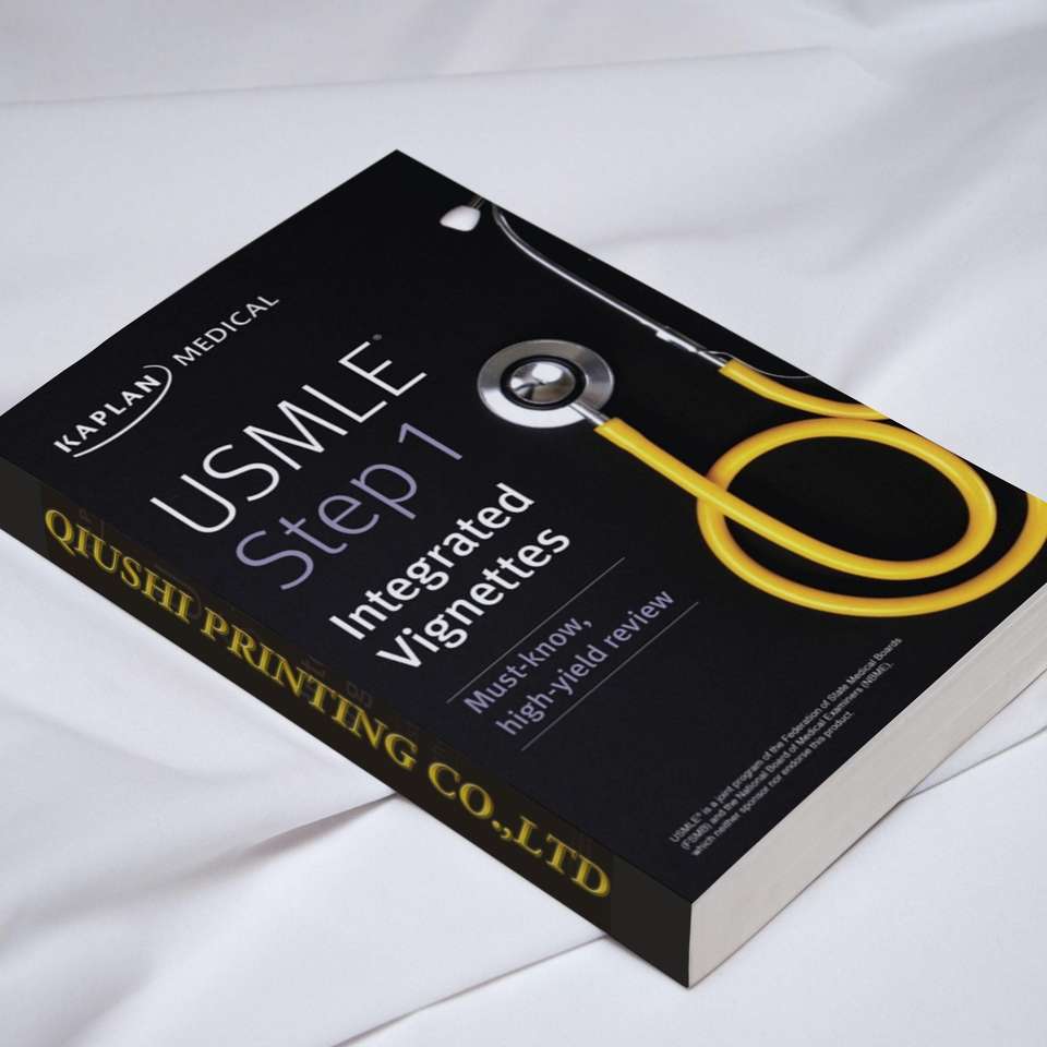 USMLE Paso 1: Viñetas integradas Impresión de libros de texto médicos MOQ pequeño Encuadernación de costura Encuadernación perfecta