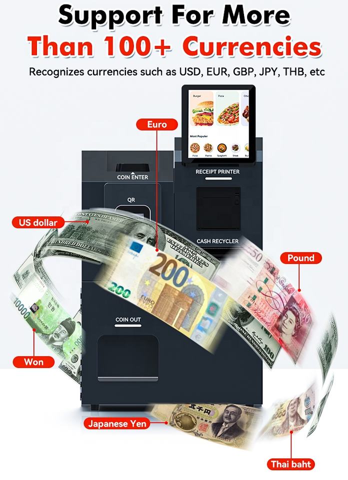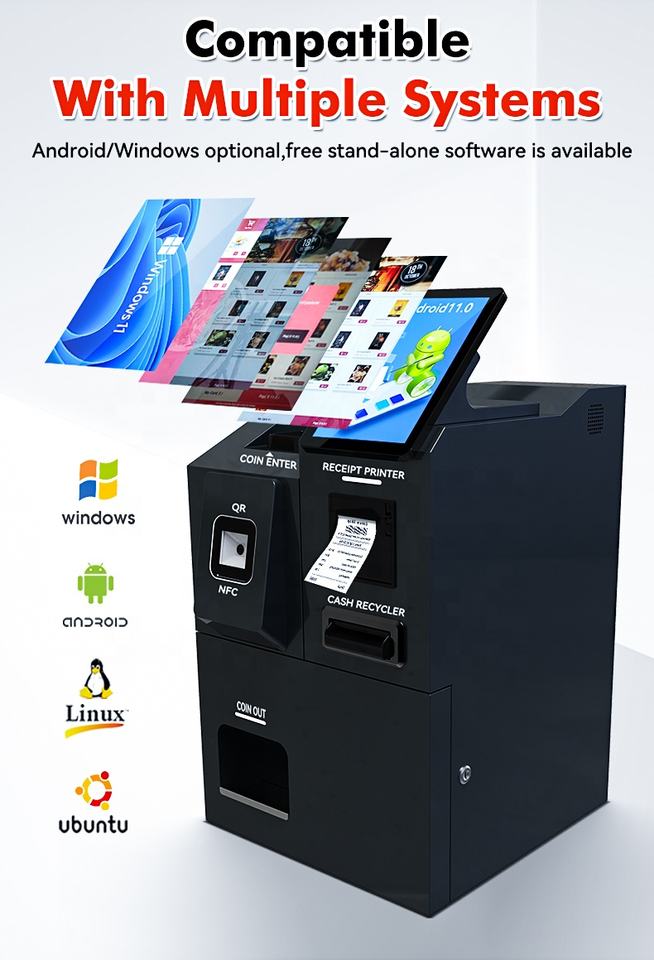 Quiosco de depósito de monedas en efectivo de alta capacidad USW con tolva de monedas escáner de código QR impresión de recibos quiosco de pago de pedido automático personalizado