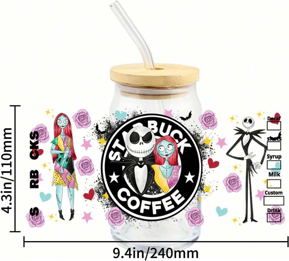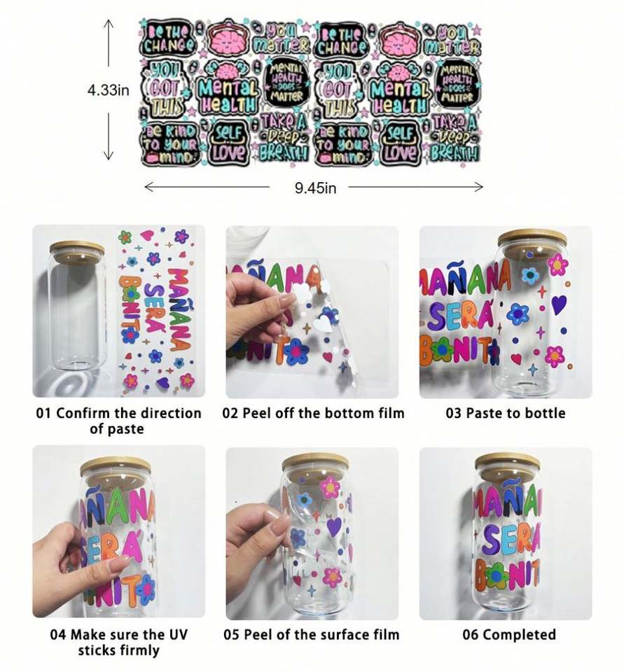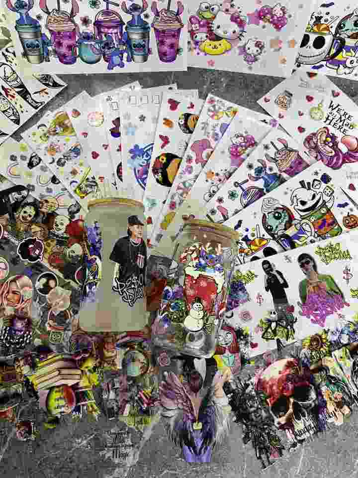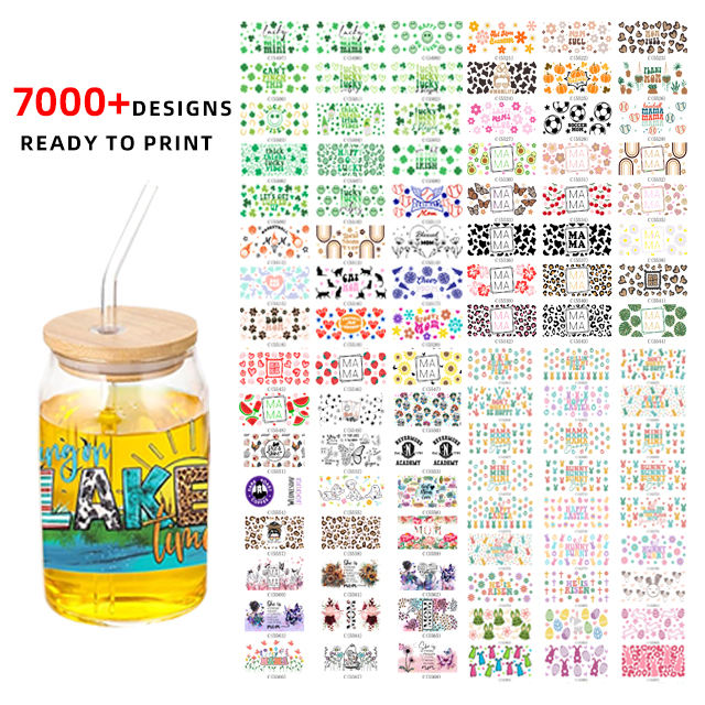 Vinilo Adhesivo UV DTF para Vasos de 16oz, 7000 Diseños Listos para Imprimir, Serigrafía, Portátil, Promocional