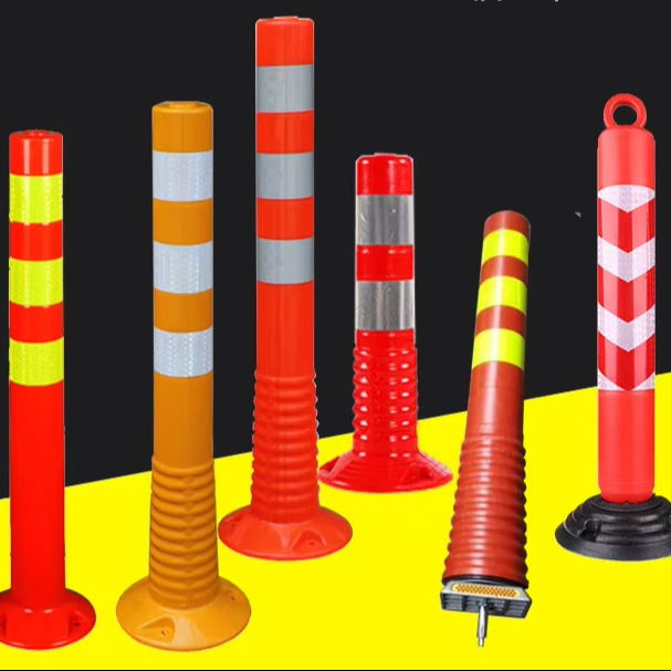 Poste de Advertencia Duradero de 820 mm Resistente a los Rayos UV, Material de PE, Naranja y Negro, Diámetro del Poste de 200 mm, Base de Goma, para Uso en Carreteras