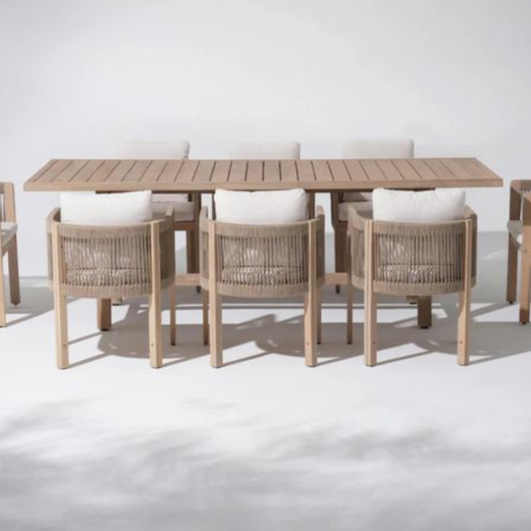 Conjunto de Muebles de Jardín de Aluminio y Ratán de Madera Maciza Resistente a los Rayos UV, Conjunto de Comedor para Exteriores, OEM ODM de Vietnam, Capacidad para 6 Personas, Diseño Moderno para Hotel