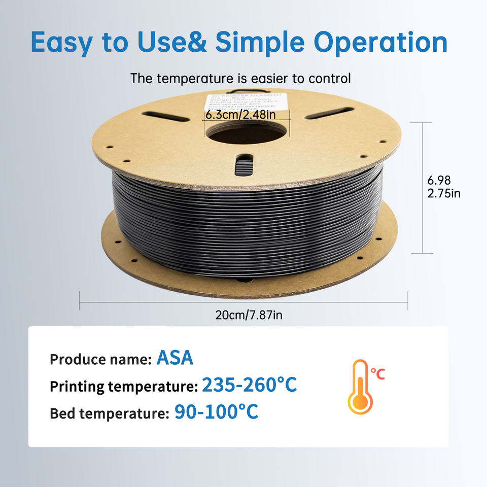 Filamento ASA para Impresora 3D Resistente a los Rayos UV y a la Intemperie, 1 kg, 1.75 mm, Resistente a Impactos, Bobina Resistente, Filamento ASA 3D de Alta Calidad