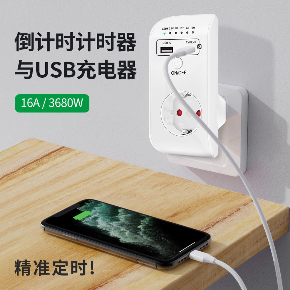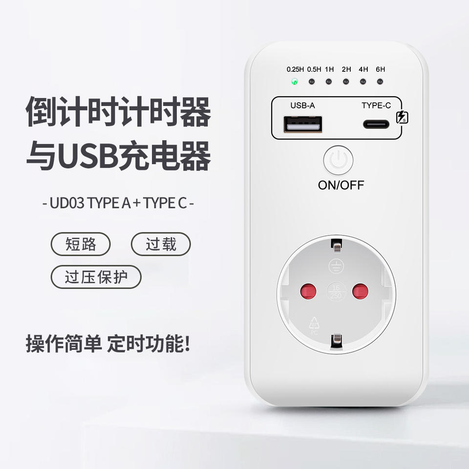 Controlador de Temporizador Ud03, Cargador de Pared USB de 18W con Indicador LED, Carga Rápida, Enchufe para Tablet, Temporizador Inteligente