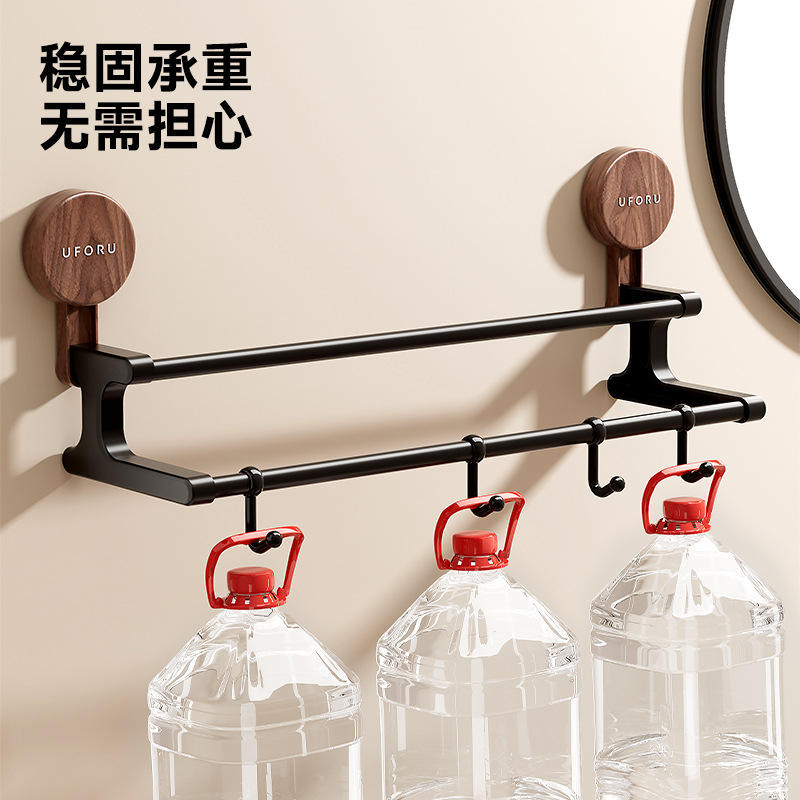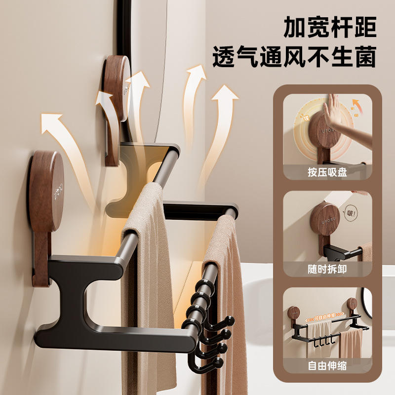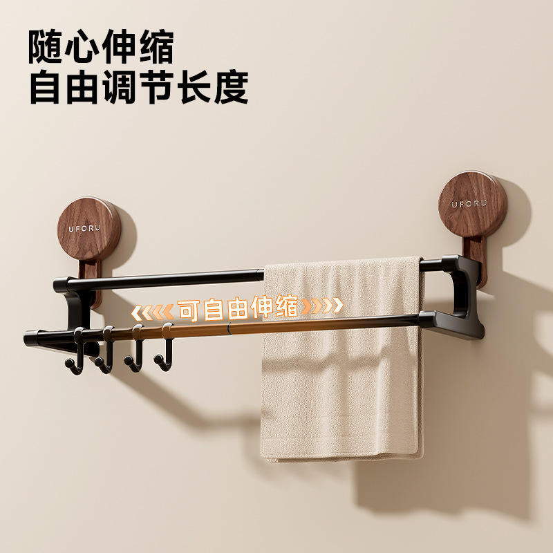 Toallero Doble Ajustable Uforu, Montaje en Pared con Succión, Barra para Toallas de Baño con Ganchos, Diseño Minimalista