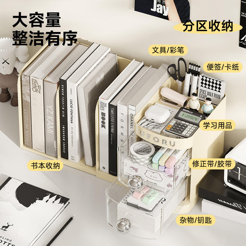 Caja de almacenamiento para escritorio Uforu, extensible de 28cm con compartimentos para libros, bolígrafos, organizadores de papelería