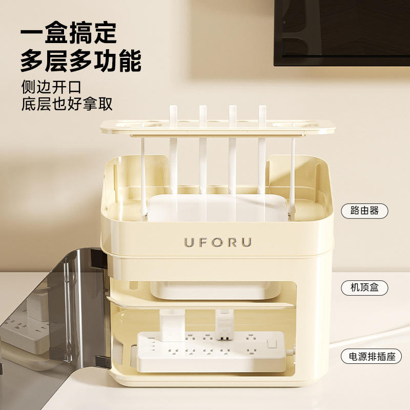 Caja de almacenamiento para router Uforu de varias capas con toma de corriente para dormitorio y sala de estar