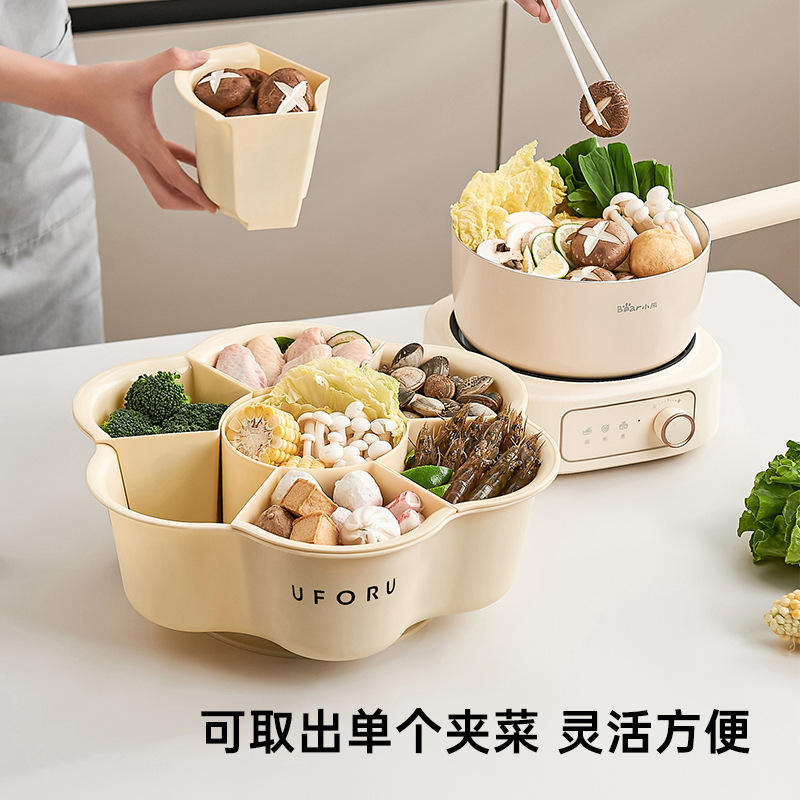 Bandeja Giratoria para Verduras Uforu con Siete Compartimentos, Gran Capacidad, Multifuncional, para Preparación de Alimentos, Color Blanco Crema