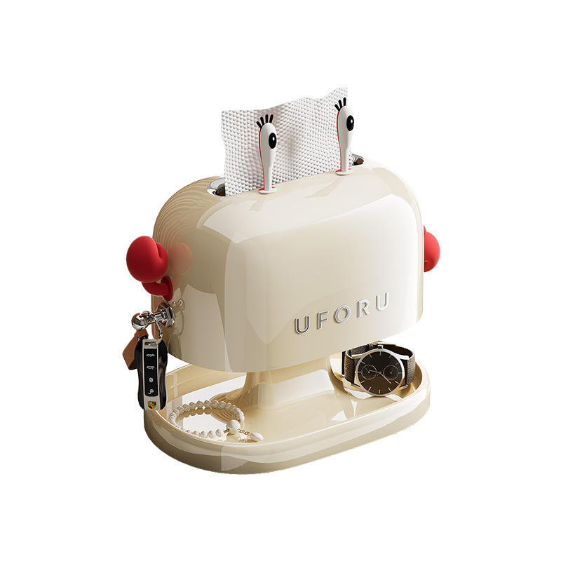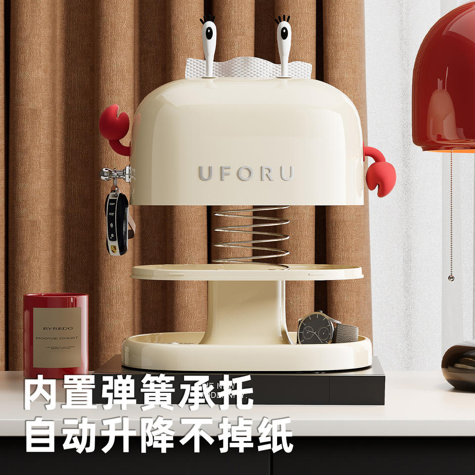 Caja de pañuelos Uforu de doble capa con elevación automática por resorte, soporte para llaves y relojes para el hogar