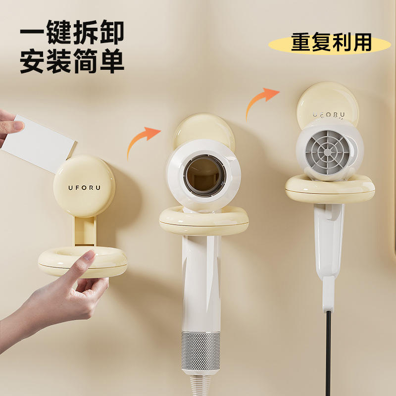 Soporte de Pared para Secador de Pelo Uforu, Blanco Mate, Redondo, con Ventosa, Sin Perforaciones, Almacenamiento para Baño