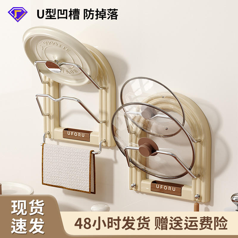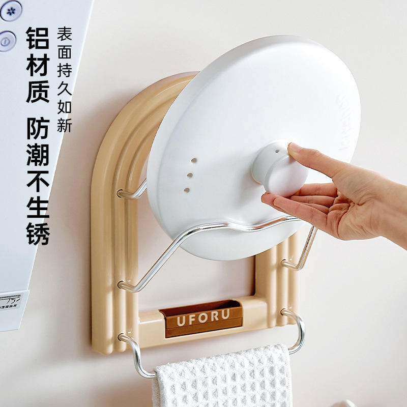 Uforu - Soporte de pared para tapas de ollas, organizador de cocina de doble capa con barra para toallas, para uso doméstico