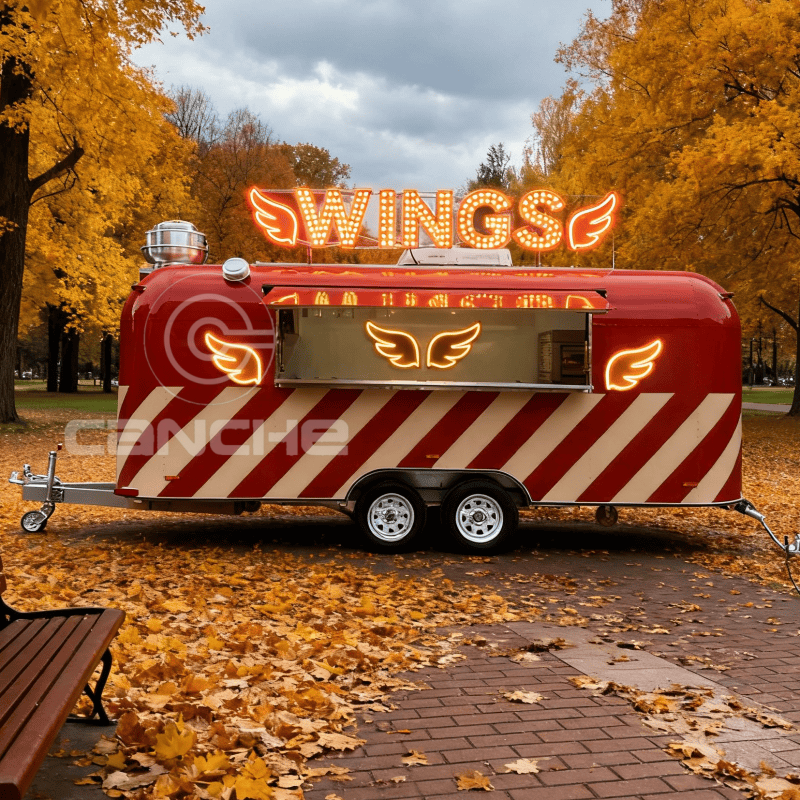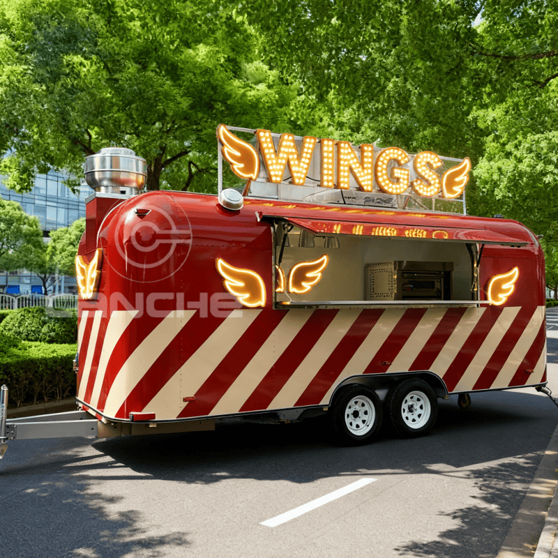condición:Carrito de remolque de comida rápida callejera de perritos calientes de camión de comida