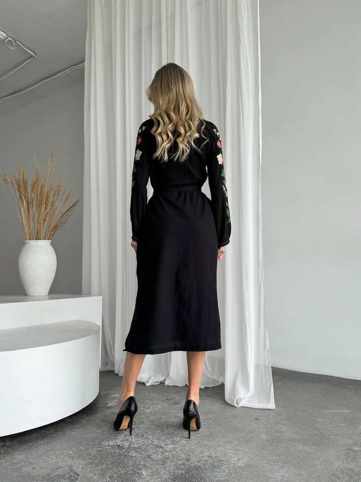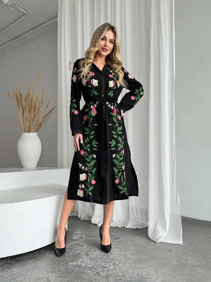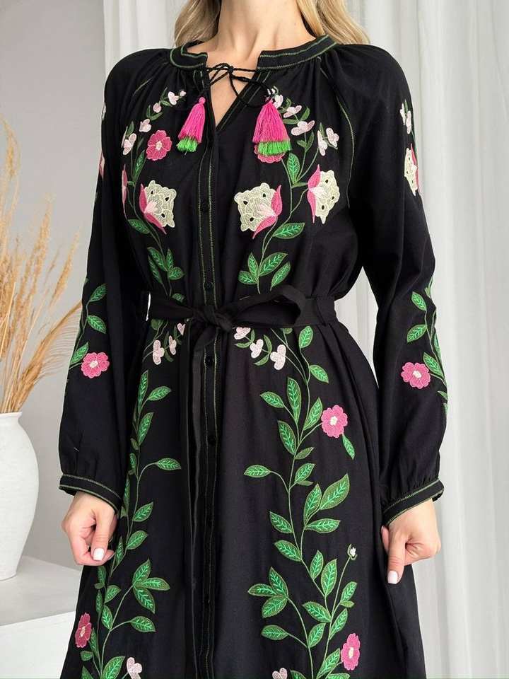 Vestido bordado negro de Ucrania Vishivanka hecho a mano con adorno tradicional ropa de mujer de estilo popular elegante