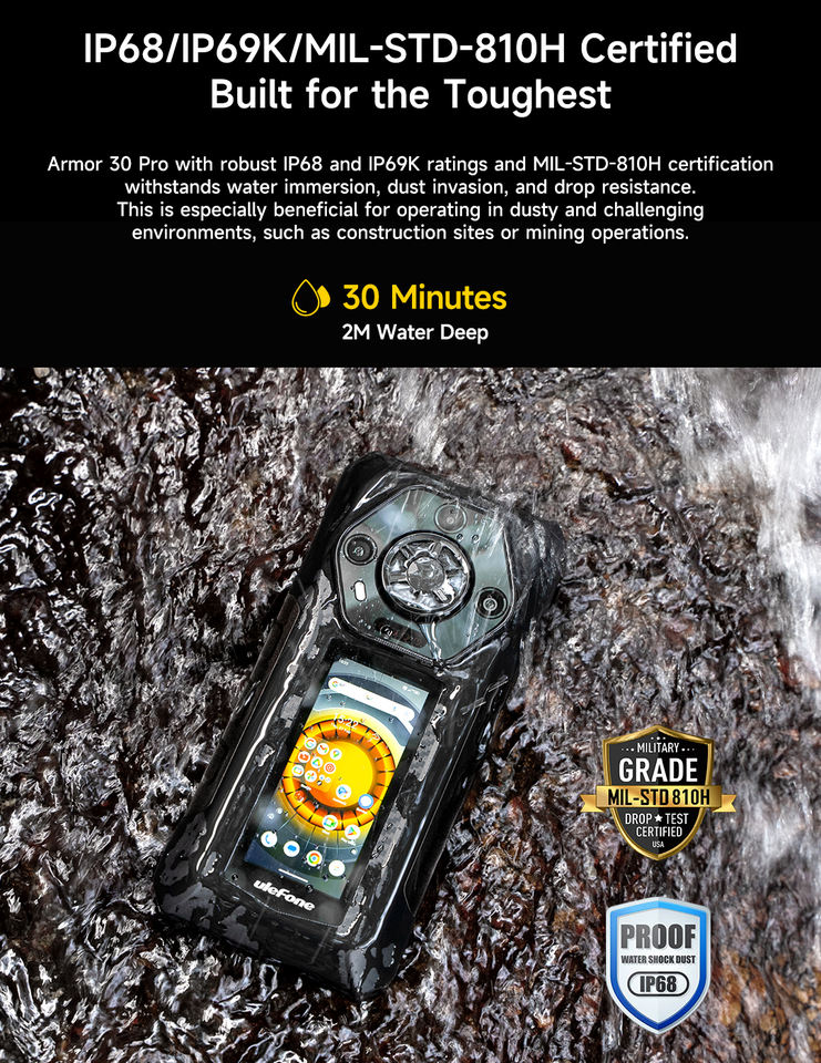 Teléfono Resistente Ulefone Armor 30 Pro, 16 GB + 512 GB, Pantalla Dual de 6.95 Pulgadas, Visión Nocturna, Android 14, 5G, NFC, Teléfono Móvil Resistente de 3.4 Pulgadas
