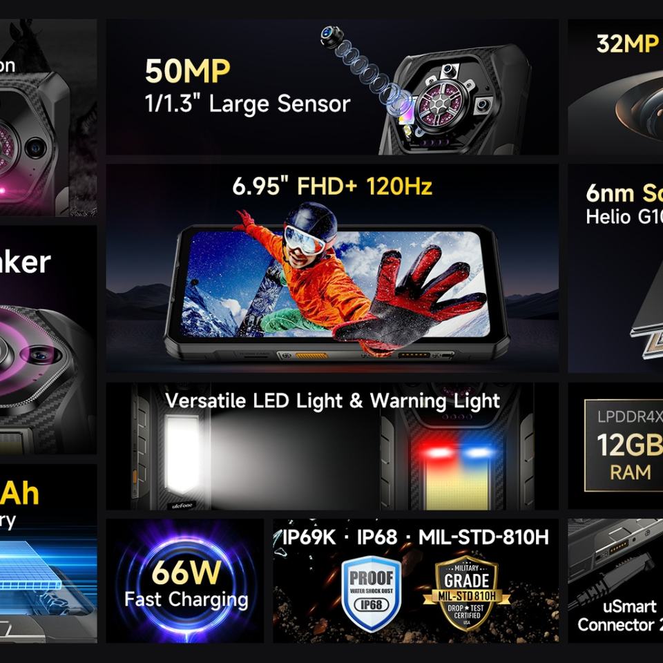 Teléfono Inteligente Resistente Ulefone Armor 30, 12+512GB, Android 15, Altavoz Potente, 12800mAh, Visión Nocturna, Cámara Principal de 50MP, Linterna para Camping