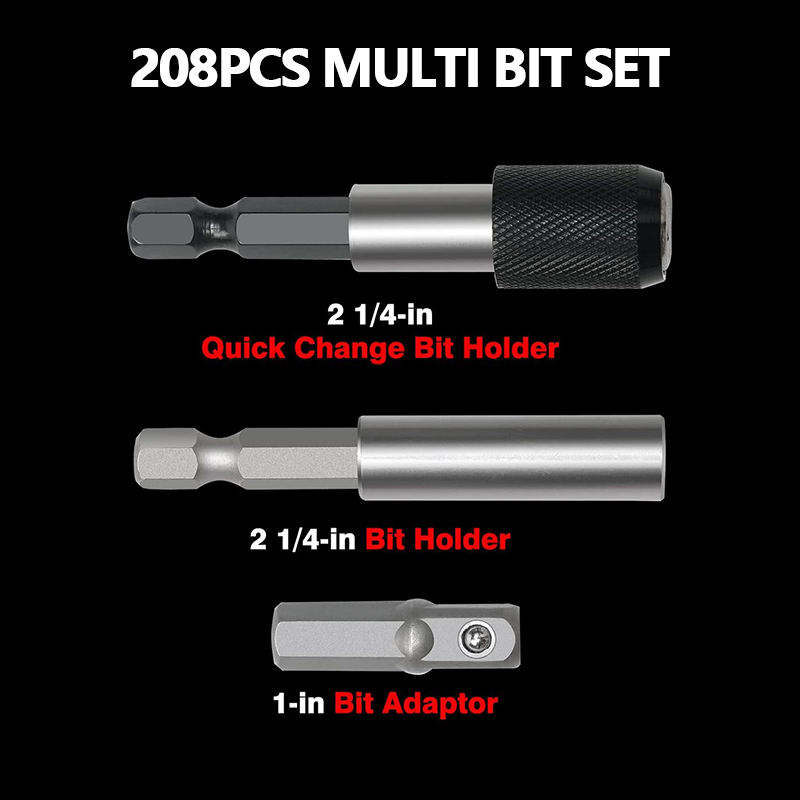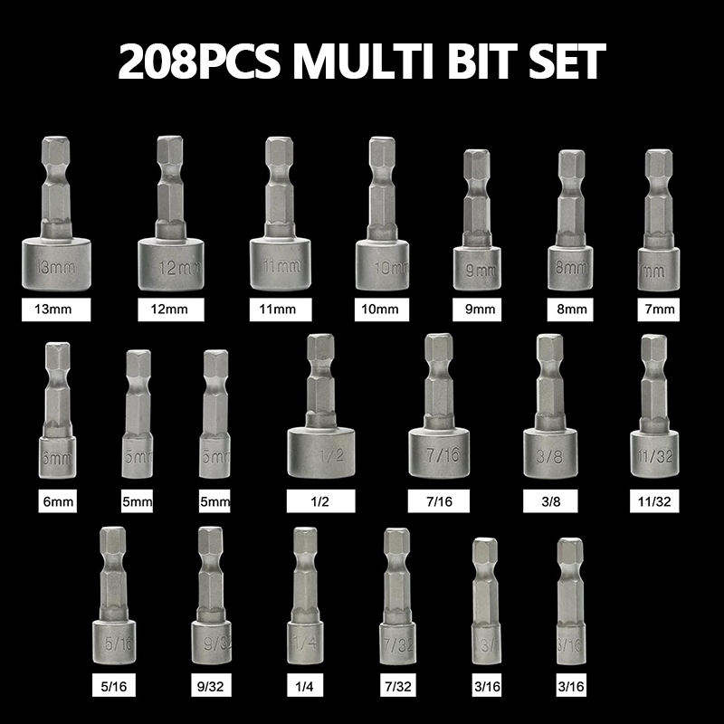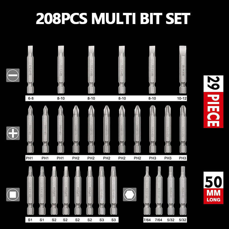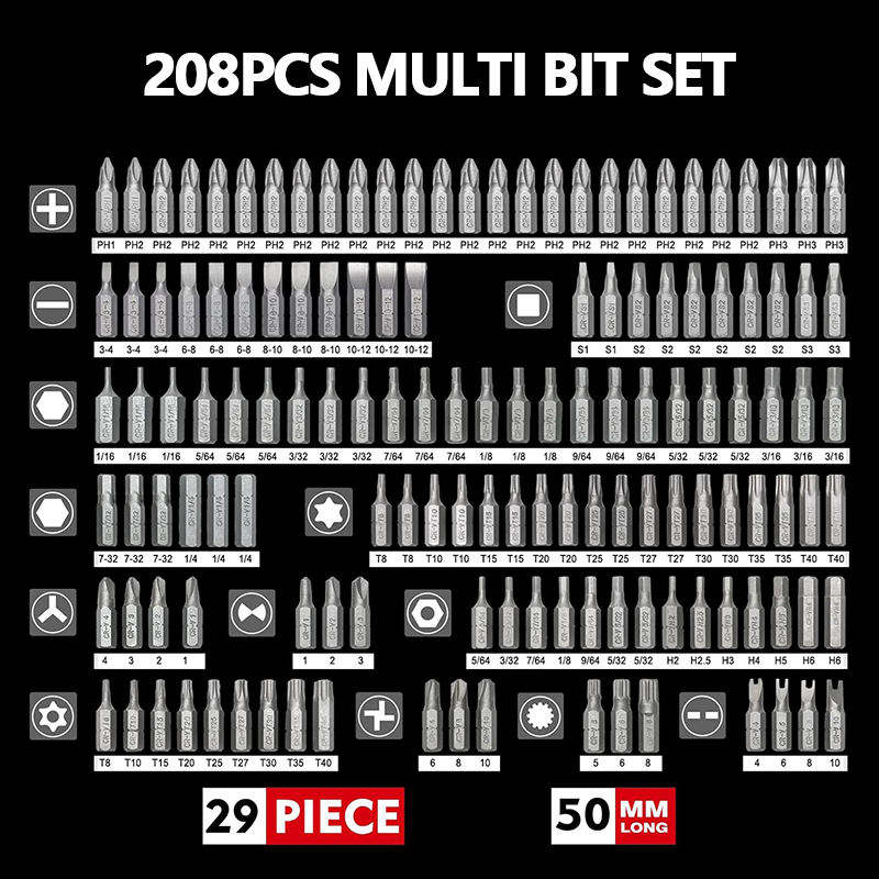 Juego de puntas de destornillador definitivo de 208 piezas: puntas de seguridad, destornilladores de tuercas, Torx, ranuradas, Phillips, cuadradas, Pozi, hexagonales para herramientas de vehículos