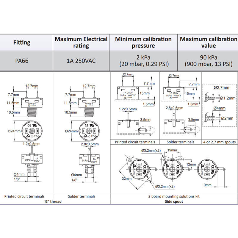 Interruptor de Presión Positiva Miniatura Ultimheat, Contactos Plateados, SPDT, Acción Lenta, Alta Sensibilidad, Control de Presión para Circuito de Agua