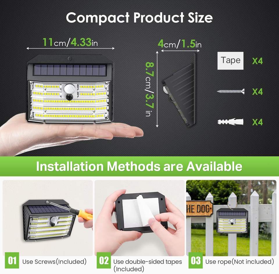 Lámpara Solar Ultra Brillante con Sensor de Movimiento para Pared, IP65 Impermeable, 3 Modos, Inalámbrica, para Jardín, Patio, Terraza, Valla, Garaje, Exterior