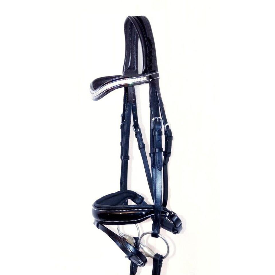Ultra Comfort Rider Navan Anatomic Brida 'E' Broche en forma de cuero genuino Estilo occidental Brida de caballo Lujo Colorido