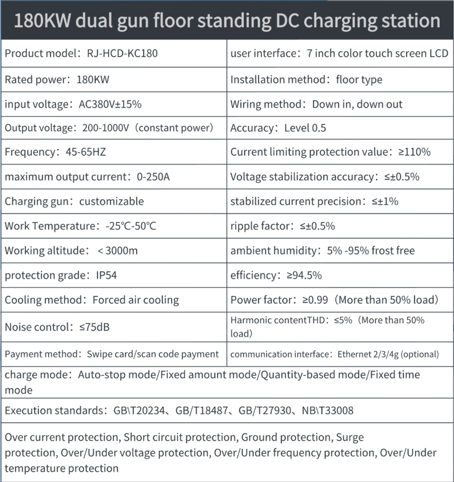 Cargador de CC ultrarrápido de 180 kW con doble enchufe CCS1 CCS2 GBT, estación de carga universal para vehículos eléctricos, poste de carga compacto de 800*800 con base de suelo.