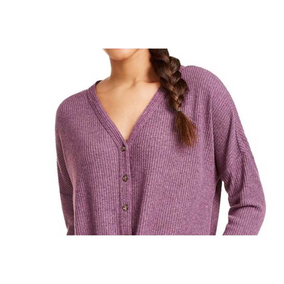 Top Ultra Flirt Cozy Ribbed con Lazos Delanteros para Jóvenes, Color Morado, Talla Mediana - Estilo Casual