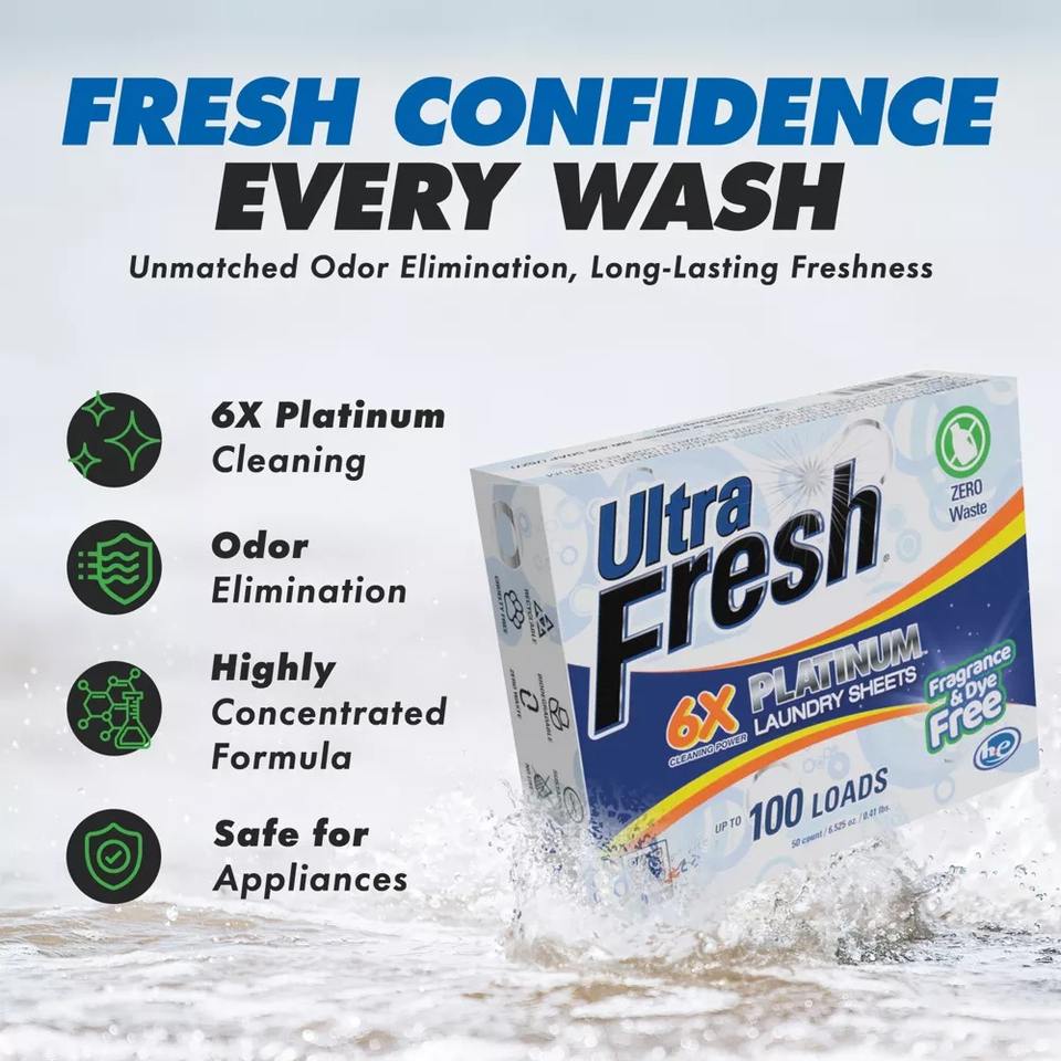 Hojas de Detergente para Ropa Ultra Fresh Platinum 6X con Fragancia y Sin Colorantes