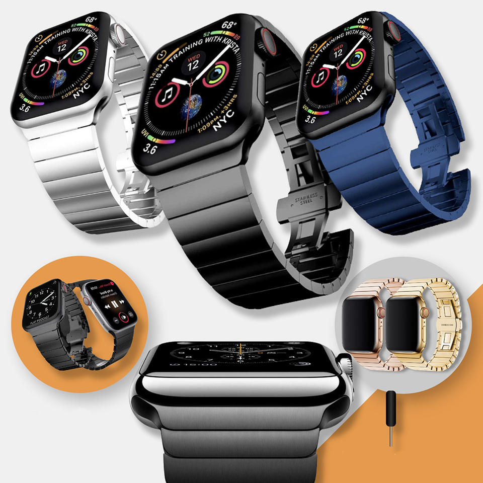 Correa de reloj inteligente de titanio ultraligera con correa de hebilla de mariposa de acero inoxidable de bambú Compatible con Apple Watch