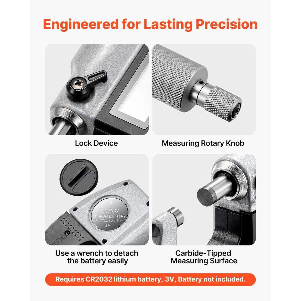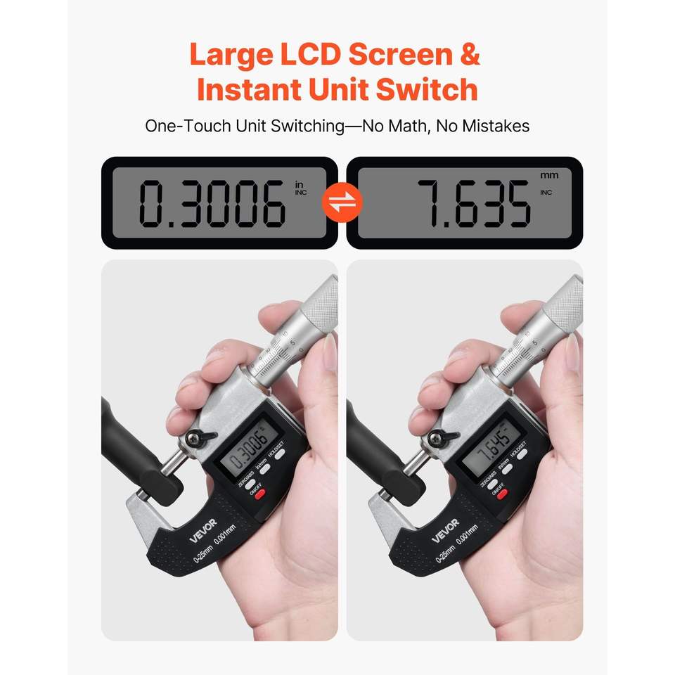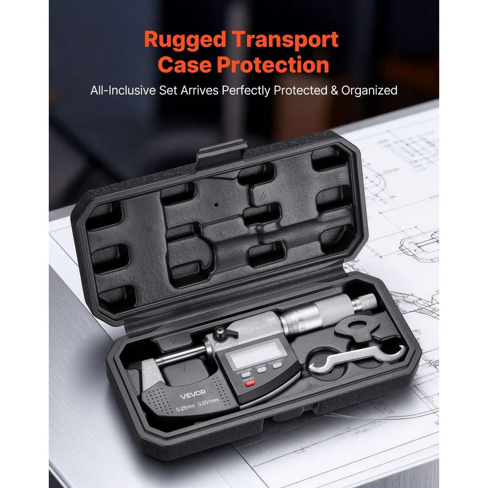 Juego de Micrómetros Digitales de Ultra Precisión, Rango de Medición de 0-1 Pulgada, Resolución de 0.00005 Pulgadas, Precisión de 0.0001, Pantalla LCD