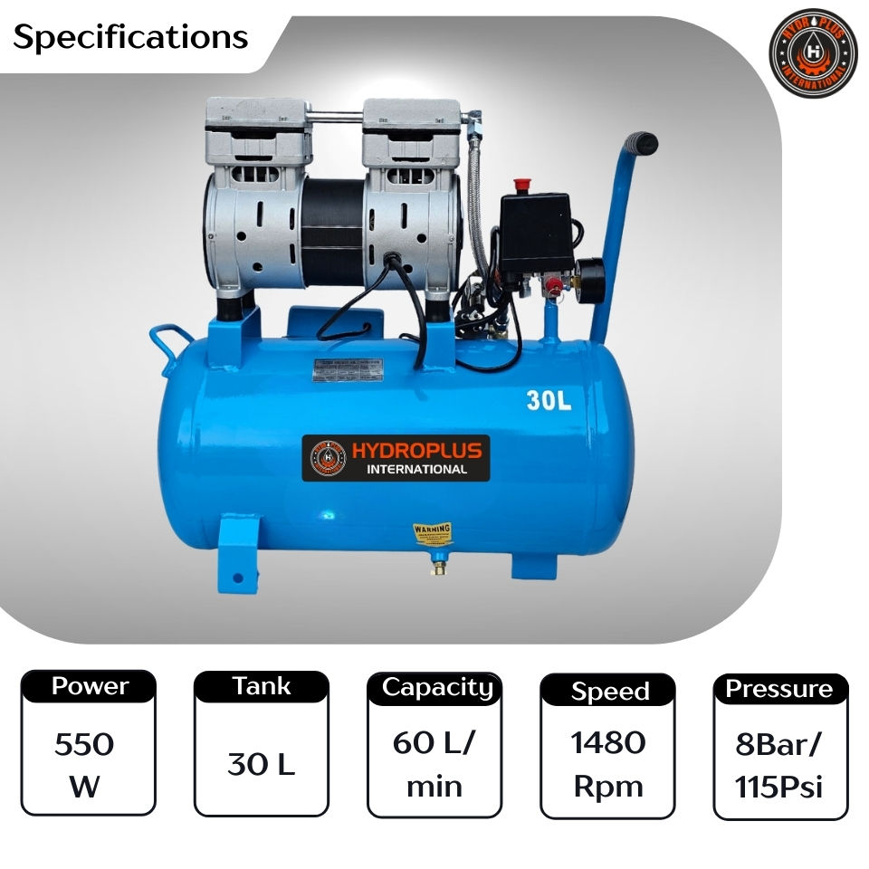 Compresor Ultra Silencioso de 30L y 1HP Sin Aceite, Máquina de Alta Eficiencia para Talleres Mecánicos, Uso en Talleres, Pintura y Herramientas