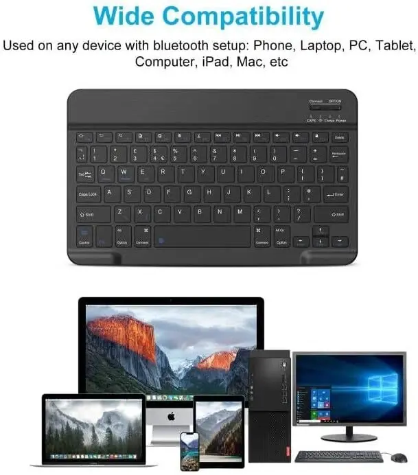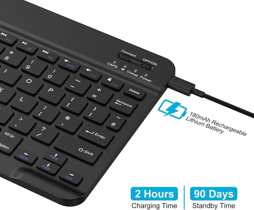 Teclado BT ultradelgado Mini teclado inalámbrico portátil recargable para Apple iPad iPhone Samsung Tablet teléfono IOS Android 10"